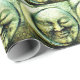 Sol sorridente e emoldurado por uma lua crescente. Feito em pedra, olhe em cores de verde, ouro, bronze e preto.