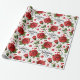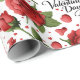 Papel De Presente Lush Red Roses with Scattered Heart Petals Pattern