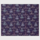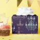 Um padrão requintado de candelabro num fundo roxo escuro.