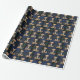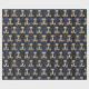 This blue tartan gift wrap features a cute preppy bear holding a gift on a plaid background.