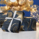 Papel De Presente Luxury Navy Gold Fluid Motion Abstract Pattern