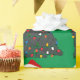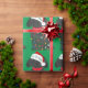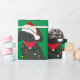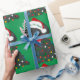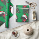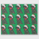 Bela Cartoon Labradoodle Puppy vestindo "Esta é a estação" chapéu de Papai Noel, embrulhado em luzes de natal.