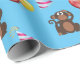 Este papel de embrulho de aniversário tem um macaco festivo com balões e um chapéu de festa. O papel é azul, que é um fundo excelente para o impressão de macaco. Crianças, especialmente garotos gostarão deste belo presente.