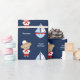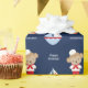 O adorável design náutico apresenta uma ilustração fofa de um macaco vestindo uma roupa de marinheiro e um veleiro azul-claro e vermelho. Personalize-o com um nome ou texto da sua escolha para um design.