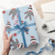 Enrole seus presentes de Natal este ano com este adorável macaco-meia com o padrão de chapéu de Papai Noel em um fundo azul. Isto é perfeito para enrolar os presentes de qualquer amante de macaco-meia!