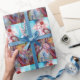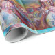 Elegante, colorido, elegante e design único em cores brancas brilhantes, vermelhas, cor-de-rosa, azuis. Bonita personagem loira sofisticada, tecidos brilhantes de uma fantasia barroca com rosa vermelha. Pintor aquoso original e acrílico com folha de ouro e cores iridescentes na canvas