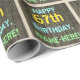Este divertido design de papel de embrulho com tema de aniversário apresenta uma mensagem como "FELIZ 67º ANIVERSÁRIO, NOME AQUI!", onde o nome pode ser personalizado. O fundo apresenta um padrão de aparência rústico, castanho e falso em grãos de madeira. O texto de mensagem personalizável apresenta cores como azul, amarelo e verde, e tem uma aparência inspirada pela de letras pintadas e estêncilhadas. Um papel de embrulho como este poderia talvez ser usado para embrulhar presentes de aniversário que são dados a alguém que comemora seu sessenta e sétimo aniversário. [~Z0000293]