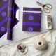 Possui roxo fractal e estrelas azuis de David em um fundo escuro.