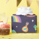 ELEMENTOS DE CONTAGEM DE FIO ASSISTENTE ATUAIS e giros com FLAGS, WIZARD HAT, RAINBOWS, STARS, varinha mágica, chaves de ouro, nuvens, coroa, espadas, lua e estrelas com fundo azul roxo. Belas ideias de presentes de unicórnio para mulheres e meninas. Ideal para aniversários do tema de contos de fadas e magos