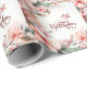 Papel De Presente Magnolia Rosa Blossomas e Pássaros Feliz Aniversár