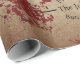 Este papel de embrulho de presente personalizado apresenta um tema assustador de horror no Dia das Bruxas. O fundo é uma cor castanha vestida e suja, com manchas de sangue espalhadas sobre ela. Um nome de compro de marcador de amostra é impresso próximo à parte superior, que você pode personalizar para incluir seu próprio nome e texto personalizados.