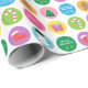 Envolva os presentes de Natal para seus amigos e família com este plástico colorido e brilhante com espaço para a personalização de mensagens e nomes em um dos círculos. Cada círculo surge com uma design de Natal, que inclui o Gingerbird, a árvore de Natal, o presente embrulhado, a cana-de-açúcar vermelha e branca, o boneco de neve e a meia de Natal. As mensagens de texto são "Feriados Felizes!" E "Feliz Natal" com bagas de Natal. Um papel de embrulho elegante e alegre.