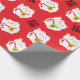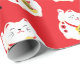 Molho ilustrado colorido com um padrão de gatos sortudos Maneki Neko. Muitas vezes vemos este gato simbólico na China e no Japão. O gato está segurando uma moeda de Koban dourada, com a inscrição FUKU, que significa Fortune em japonês.