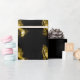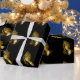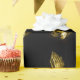 Rezando as mãos sobre um fundo preto em tons de papel embrulhado em ouro