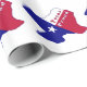 Belo mapa vermelho, branco e azul do Texas com design de cobertura de bandeira diz Texas Proud. Mostre seu orgulho texano no estado de Lone Star do Texas.