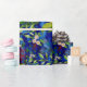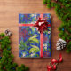 Papel de embrulho de presente de qualidade superior, com um design original de Gerbera Daisies vermelha, minúsculas margaridas brancas com centros amarelos profundos, borboletas azuis e roxas e uma folhagem verde-macia graciosa contra um rico fundo azul real, criado de uma forma que emula o aspecto de uma pintura aquosa na seda. Pelo artista digital Leslie Sigal Javorek, este presente é adequado para qualquer ocasião! Consulte coordenando produtos em IconDoIt.