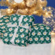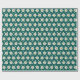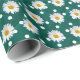 Bolinhas brancas sobre fundo verde colado com flores margaridas brancas.
