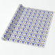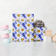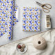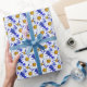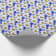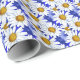 Papel de enrolamento num padrão de cor d'água de margaridas brancas com centros ouro amarelos, sobre fundo em tons de azul denim
