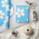 Papel De Presente Margarida Simples Branco Azul Dourada