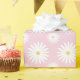 Um padrão floral de margaridas brancas em um fundo rosa pastel.