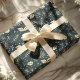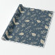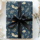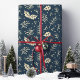 Papel De Presente Marinho Azul Folhagem Floral Natal Botânico