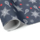 Marinho azul 💙 tênis de papel de embrulho de Natal. Rackets brancos de tênis, bolas vermelhas de tênis e muitos flocos brancos de neve agudos sobre fundo azul marinho.