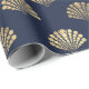 Papel De Presente Marinho Blue Metallic Sea Shells Sereia