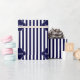 Papel De Presente Marinho Blue White Stripes, Monograma do Rótulo do