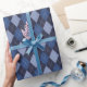 Este clássico papel azul de embrulho marinho para ele apresenta um elegante padrão de argtilo com diferentes tons de ouros azuis e linhas pontilhadas.