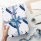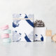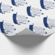 Design náutico da escuna com as velas listradas nos azuis marinhos.