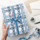 Papel De Presente Marinho de aquarela e Xadrez azul