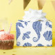 Este belo papel de embrulho de Natal costeiro apresenta um padrão oceânico náutico de cavalos-do-mar azul-marinho, conchas, e galões de fundo branco, para um design de férias de praia festiva. Se você quiser esta design em mais produtos ou outras formas de cores, ou para outras consultas relacionadas a design, por favor entre em contato comigo através do Zazzle Chat.