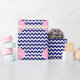 Papel De Presente Marinho Whevron ZigZag Quatrefoil Rosa Monograma