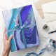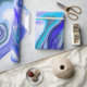 Papel de presente de aniversário ou chá de bebê de arte fluida em mármore azul e branco.