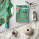Papel De Presente Mármore Líquido Verde e Dourado