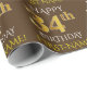 Este design de papel de embrulho apresenta uma mensagem como "FELIZ 34º ANIVERSÁRIO", com o "34º" a ter uma aparência falsa/imitação de ouro. Ele também apresenta um nome que pode ser personalizado e um fundo castanho. Talvez possa ser utilizado quando se dá presentes para o trigésimo quarto aniversário de alguém. [~Z0000133]