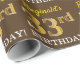 Este design de papel de embrulho apresenta uma mensagem como "Reginald's 33rd BIRTHDAY!", com o "33º" a ter uma aparência falsa/de cor dourada. O nome pode ser personalizado e o fundo é castanho. Talvez possa ser utilizado quando se dá presentes para o trigésimo terceiro aniversário de alguém. [~Z0000180]