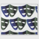Um par de máscaras de teatro, um azul e um verde. Este design parece realmente eficaz nestes papéis de enrolamento