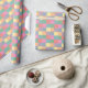 O papel de embrulho apresenta um padrão colorido e pastel, com tons pastéis de cor suave e suave, dispostos em quadrados de tamanho uniforme para um aspecto lúdico, mas elegante. Adequado para aniversários, feriados ou ocasiões especiais