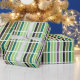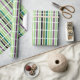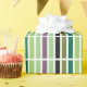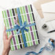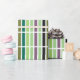 Padrão geométrico linear, retangular, listrado de matizes pretas, roxas e verdes.