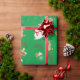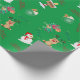 Papel De Presente Matte Christmas Green Background Reindeer, Snowman