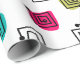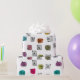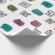 Este papel de embrulho tem uma design moderna do século médio de labirintos dispersos, alguns com bolhas coloridas debaixo deles.