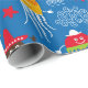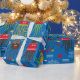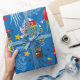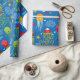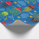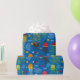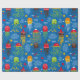Bobo, colorido, divertimento, medusa e polvo lunático com sombreros, chapéus de derby, cabelo encaracolado, olhos, sorrisos, e alguns calçados vestindo-se em um fundo azul com as estrelas do vermelho e do ouro.