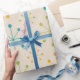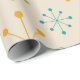 Adicione vibrações vintage ao seu presente embrulho com este elegante papel embrulho com estrelas atômicas de meio século em laranja, verde e lacre sobre fundo bege claro.