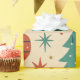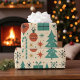 Enrole seus presentes em encantos nostálgicos com este papel de embrulho de férias retrô. Inspirado no estilo moderno do meio século clássico, apresenta um padrão geométrico de tendência com pinheiros, flocos de neve, doces, bagas e sotaques florais brancos. Perfeito para as celebrações de inverno festivas e clássicas de na moda com uma reviravolta.