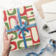 Papel de enrolamento de Abstrato de Piquês de Natal Moderno para meio século. Retro modernista modernista do médio do século médio Xmas quebra o presente geométrico de design com uma estética atômica etária, em cores de férias antigas. Por Kierkegaard Design Studio.