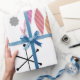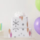 Uma era atômica retro design com um tema de Natal. Apresenta flocos de neve prateada e ornamentos de árvores de Natal vermelhos, laranja e roxas.