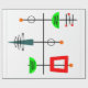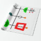 Este papel de embrulho tem um design moderno século médio que se parece com um móvel com meio círculo, retângulo inclinado, triângulo, linhas e círculos em vermelho, verde, verde, cor de rosa, laranja e preto.
