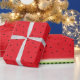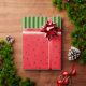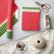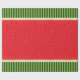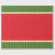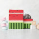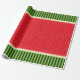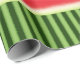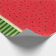Um papel de embrulho com melancia vermelha no centro e uma borda verde listrada.