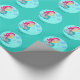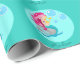 Legal e personalizável moça de praia embrulhando papel com uma bela sereia com cabelo rosa em uma bolha teal com bolhas de água flutuando acima. Personalize com o nome do receptor do presente em turquesa, a rosa bonito.